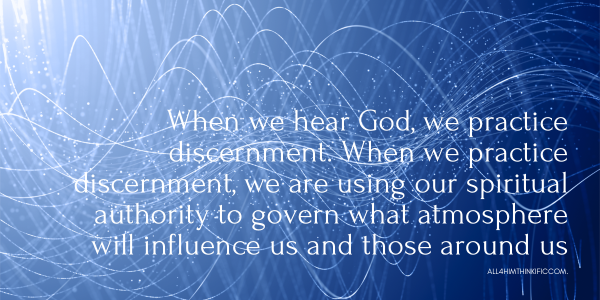 We are alive because God speaks. Everything about us is designed to hear God. It’s our nature. When we hear God, we practice discernment. When we practice discernment, we are using our spiritual authority to govern what atmosphere will influence us and those around us.