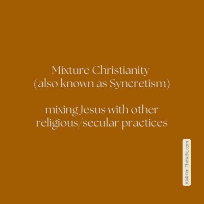 When we mix a bit of Jesus with a bit of something from another religion or philosophy, this is called Syncretism. Mixture Christianity.